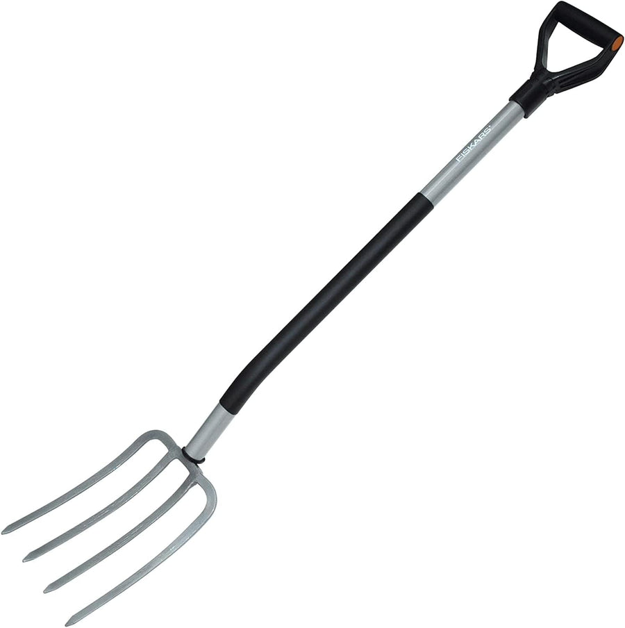 Fiskars Spatengabel für harte, steinige Böden, Mit 4 Zinken, Länge: 122 cm, Hochwertiger Borstahl, G