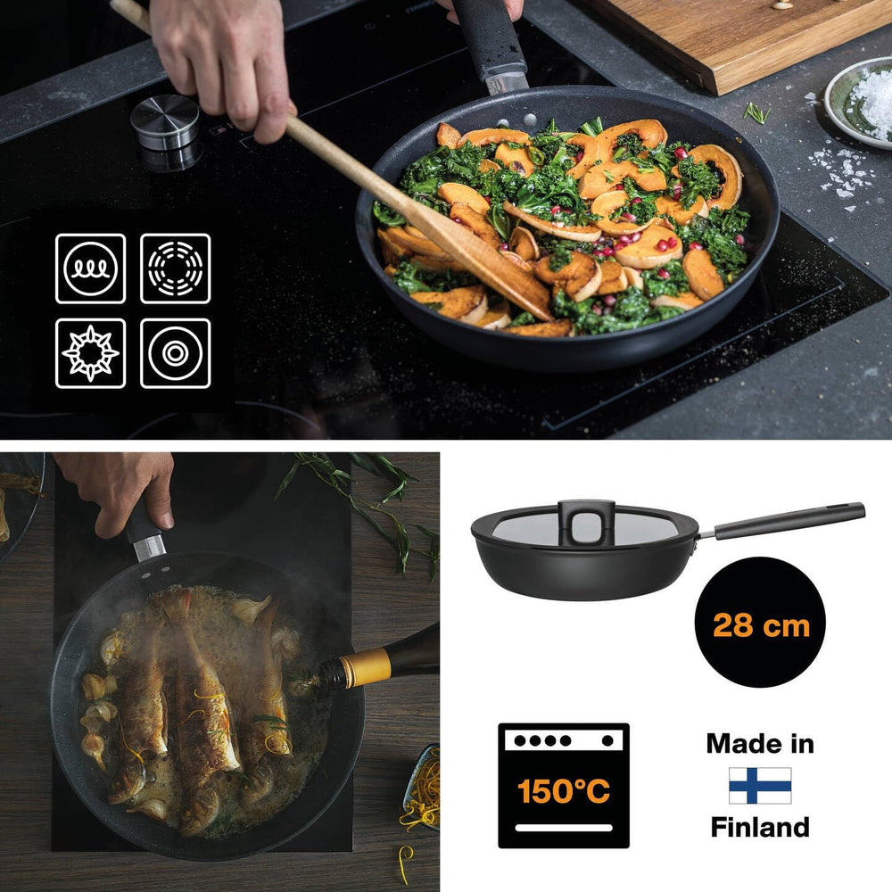 Fiskars Sautierpfanne mit Deckel, Ø 28 cm, Füllmenge: 3,5 Liter, Für alle Kochfelder geeignet, Alumi