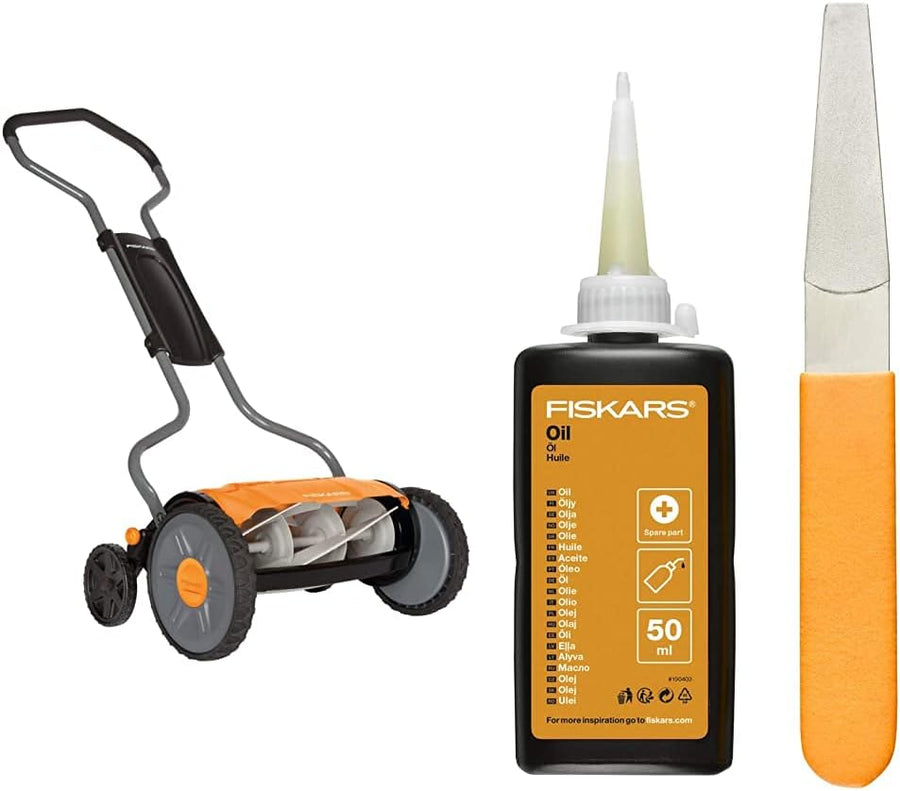 Fiskars Spindelmäher, Rasenmäher mit berührungslosem Schneidesystem, Schnittbreite: 46 cm, Schwarz/O