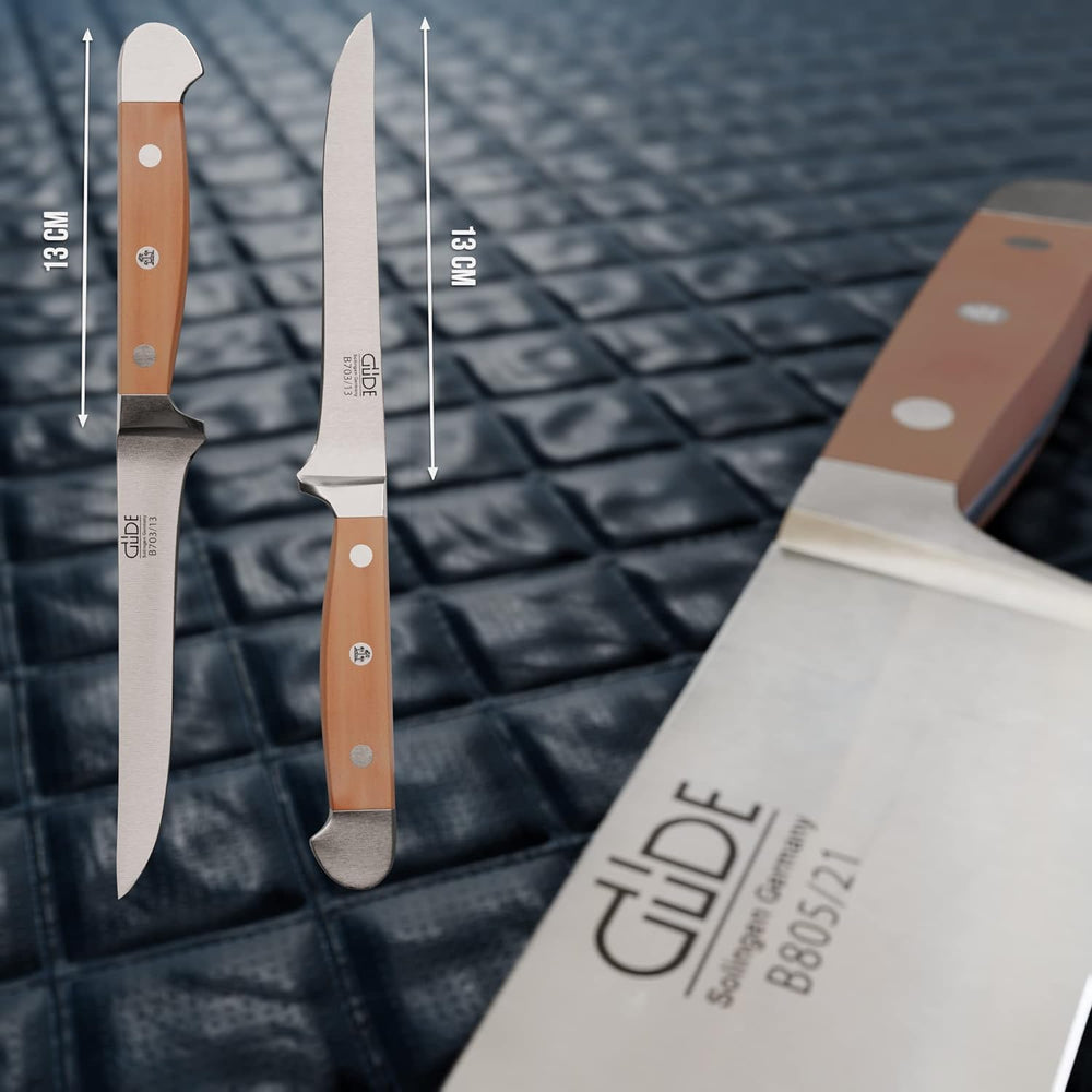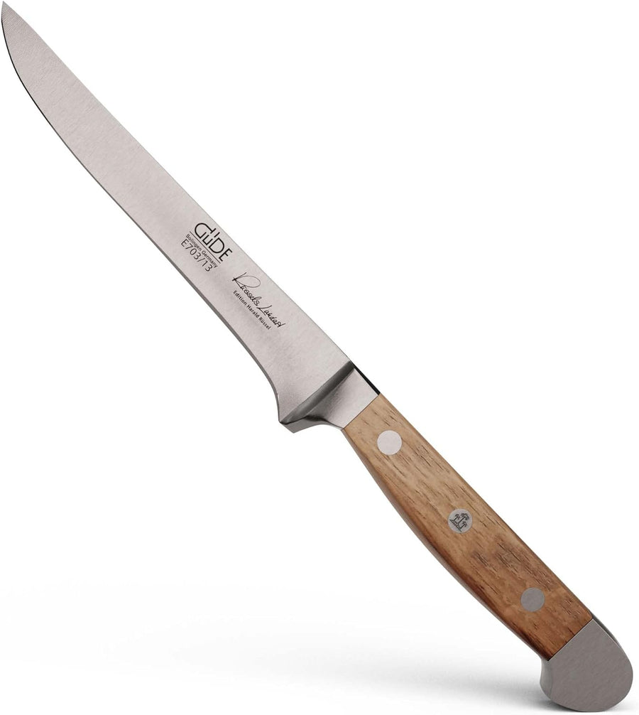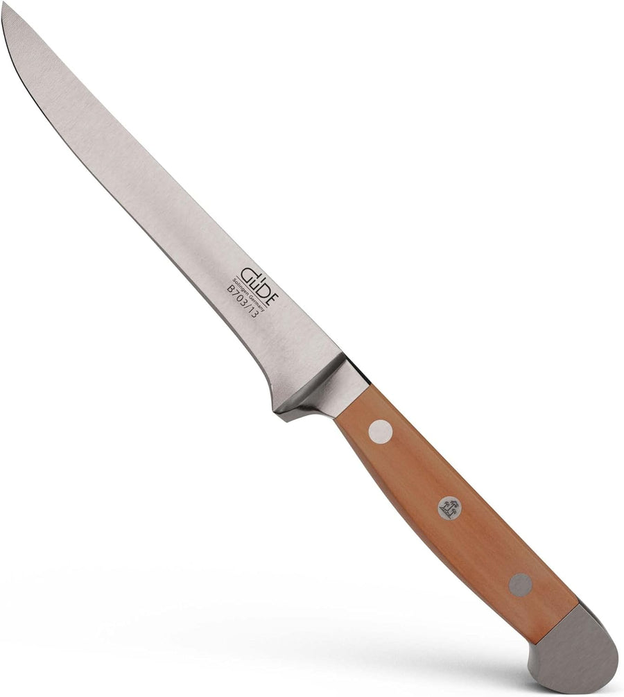GÜDE Solingen - Ausbeinmesser flexibel geschmiedet, 13 cm, Birnenholz, ALPHA BIRNE, Doppelkropf, Han