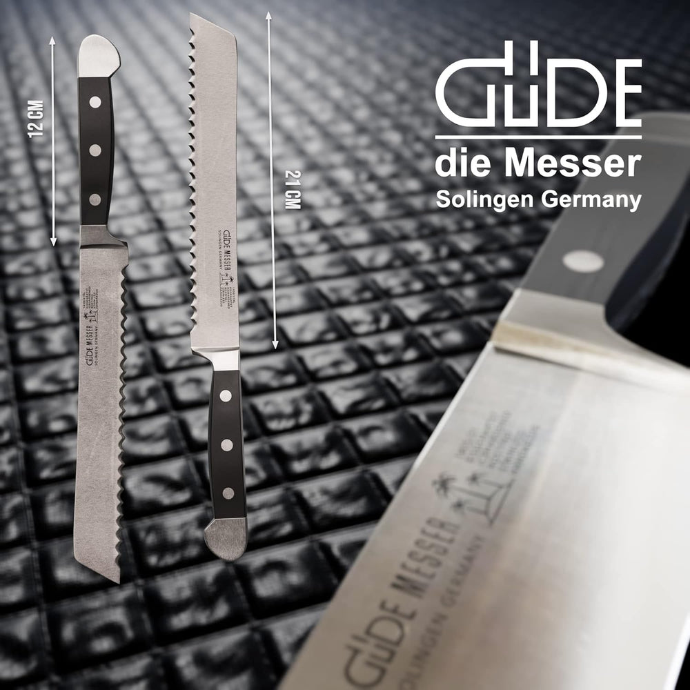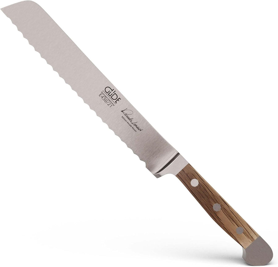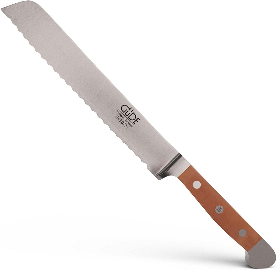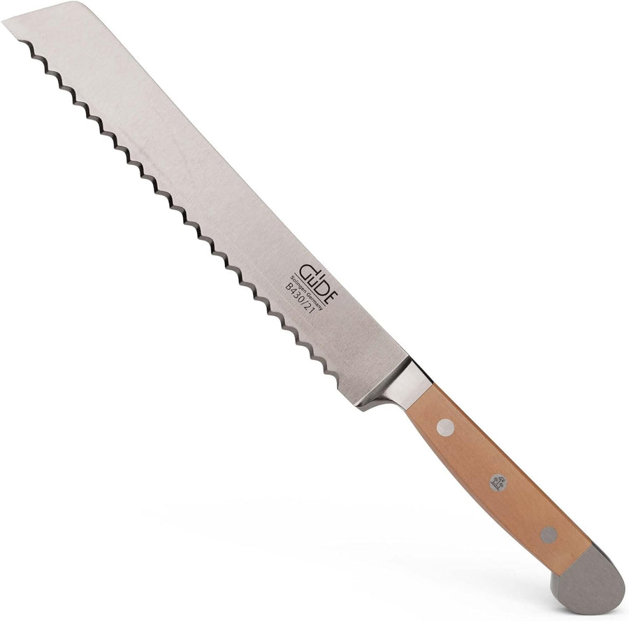 GÜDE Solingen - Brotmesser geschmiedet, 21 cm, Birnenholz, ALPHA BIRNE, Doppelkropf, Handmade German