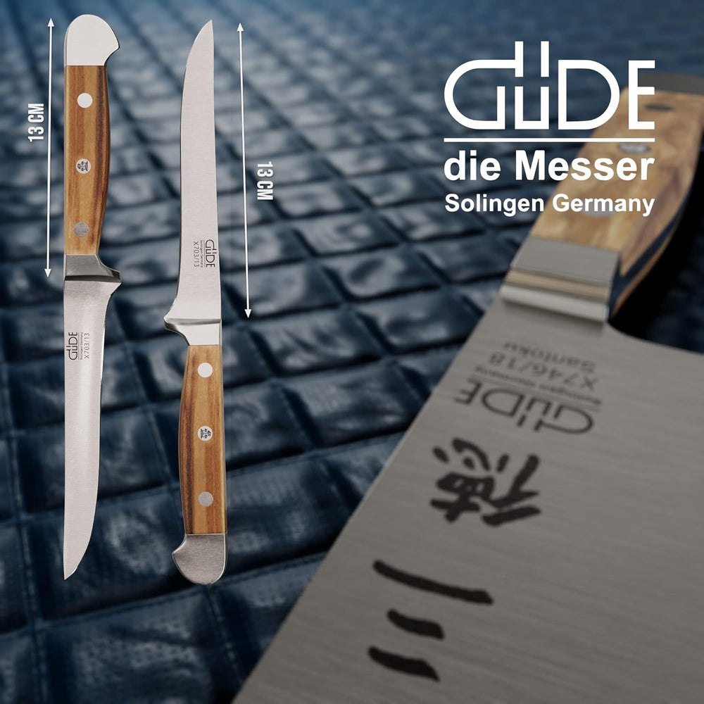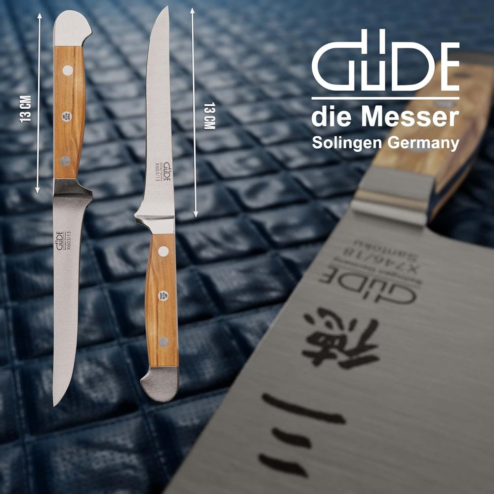 GÜDE Solingen - Ausbeinmesser geschmiedet, 13 cm, Olivenholz, ALPHA OLIVE, Doppelkropf, Handmade Ger