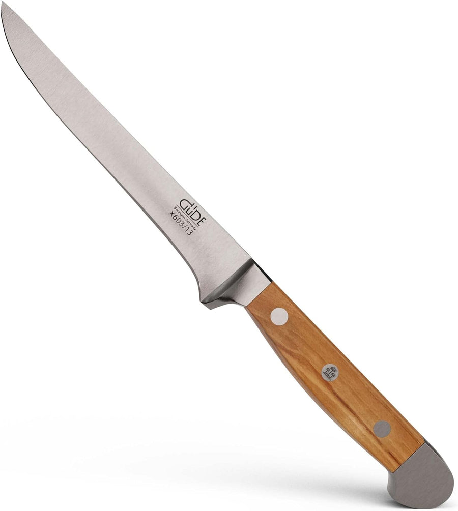 GÜDE Solingen - Ausbeinmesser flexibel geschmiedet, 13 cm, Olivenholz, ALPHA OLIVE, Doppelkropf, Han