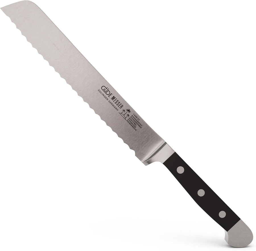 GÜDE Solingen - Brotmesser Für Links und Rechtshänder geschmiedet, 21 cm, POM schwarz, ALPHA, Doppel