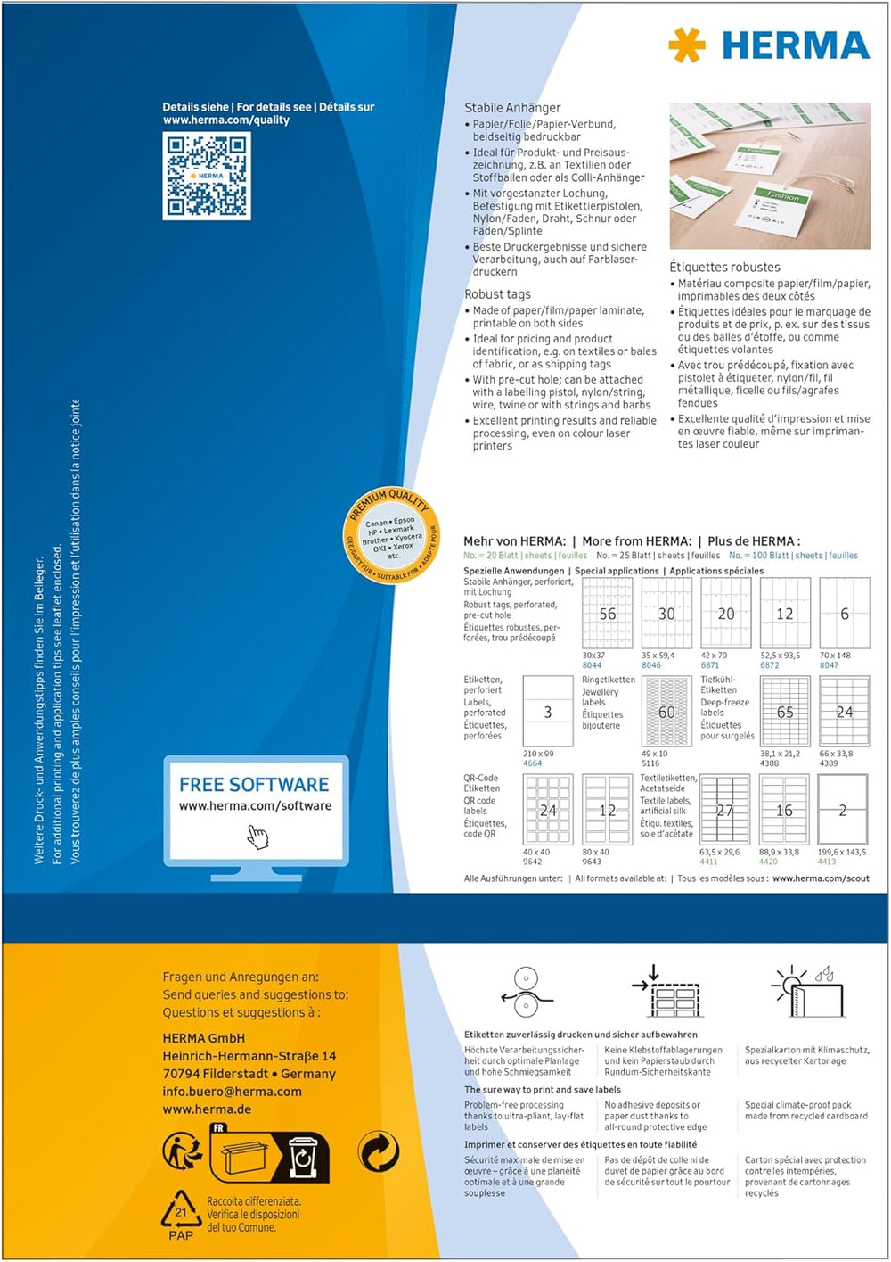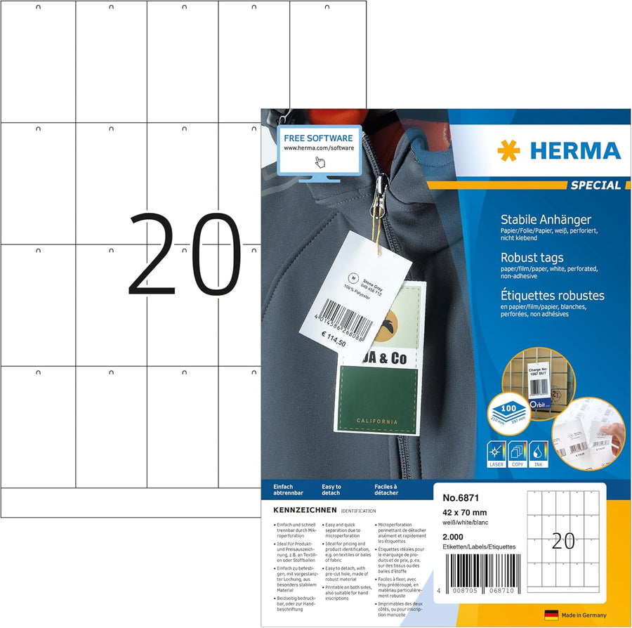 HERMA 6871 Stabile Anhänger perforiert, 100 Blatt, 42 x 70 mm, 20 Stück pro A4 Bogen, 2000 Preisanhä