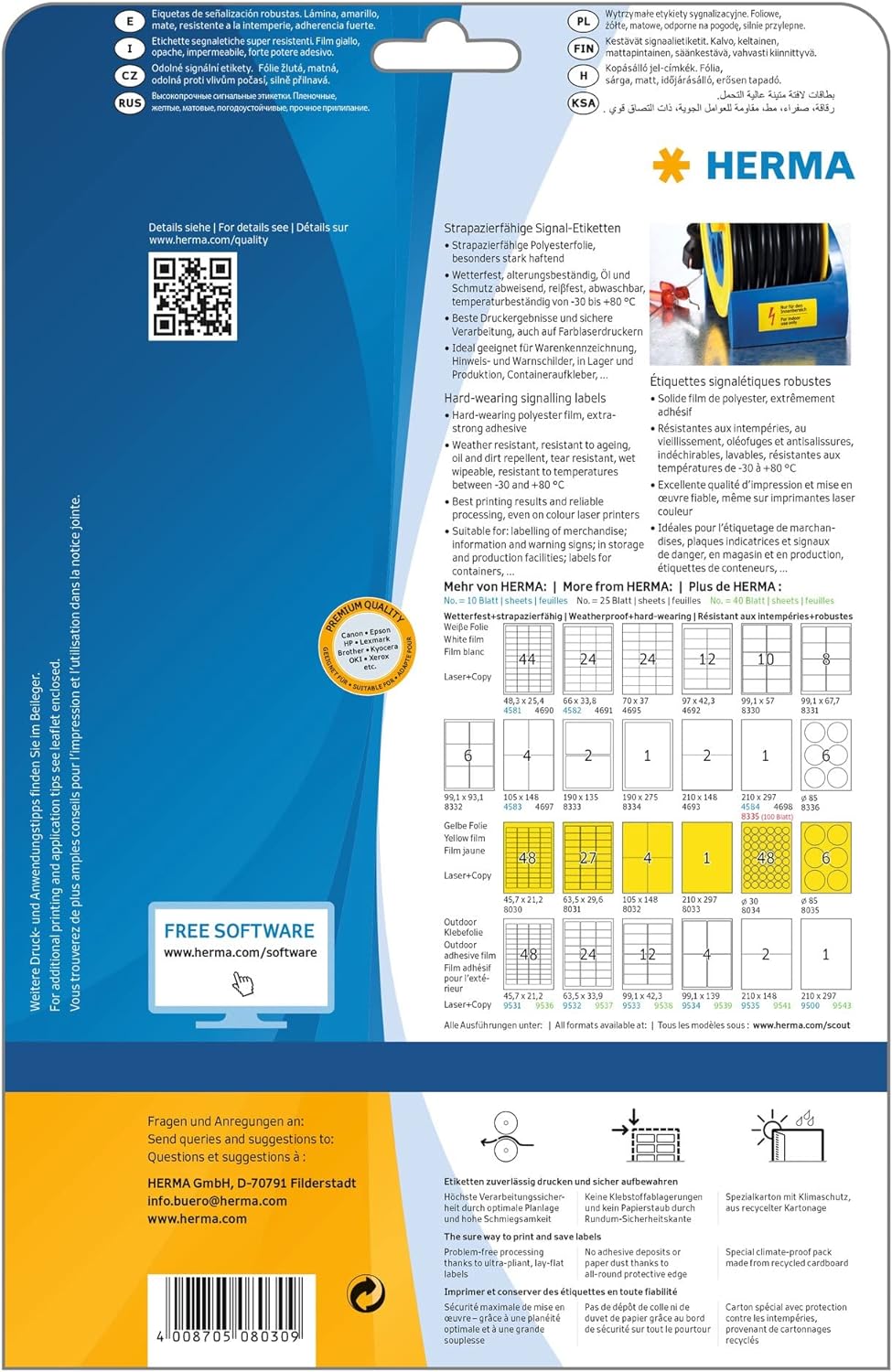 HERMA 8030 Wetterfeste Folienetiketten, 25 Blatt, 45,7 x 21,2 mm, 48 Stück pro A4 Bogen, 1200 Aufkle