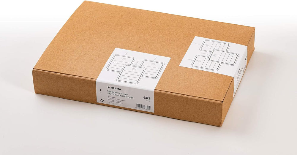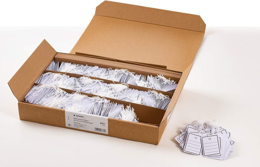 HERMA 6821 Warenanhänger liniert mit Faden, 1000 Anhängeschilder, 40 x 50 mm, Fadenlänge 8 cm, klein