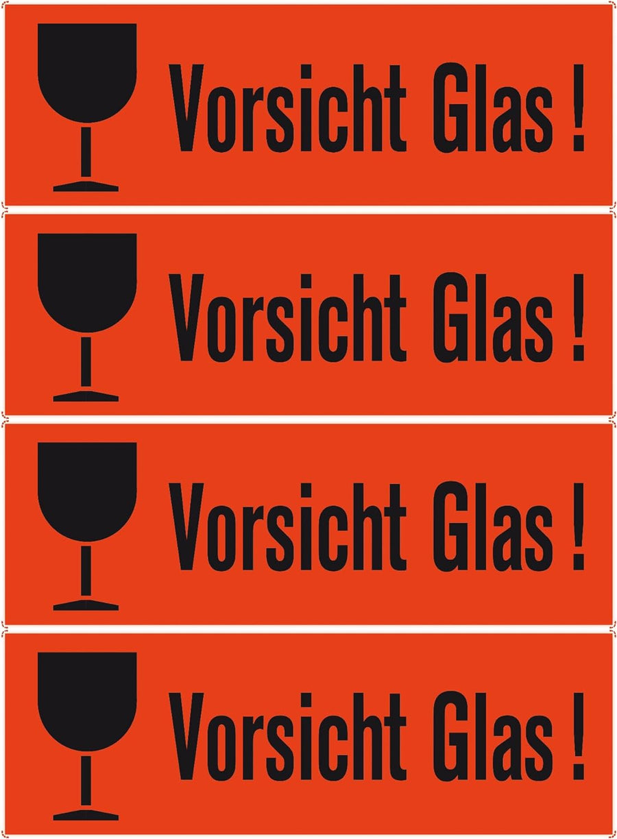 HERMA 6750 Vorsicht Glas Aufkleber, 1000 Stück, 39 x 118 mm, selbstklebend, klein, Warnhinweis Etike