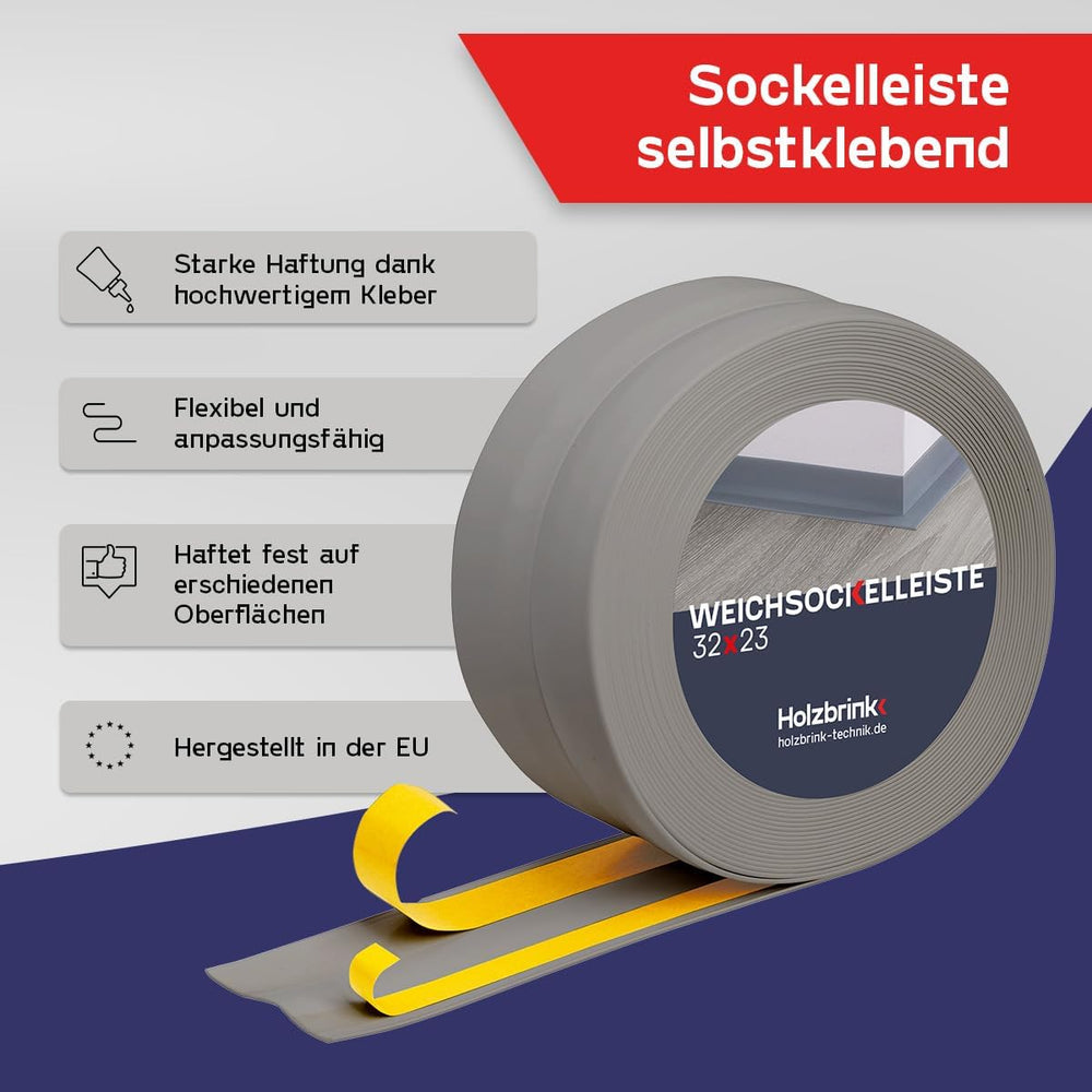 HOLZBRINK Weichsockelleiste selbstklebend HELLGRAU Knickleiste, 32x23mm, 15 Meter 15m Hellgrau, 15m