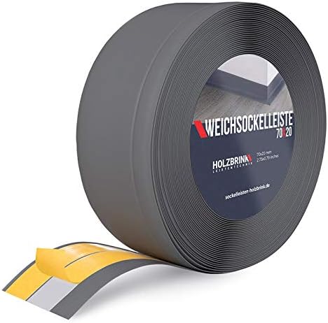 HOLZBRINK Weichsockelleiste selbstklebend Grau Knickleiste, Material: PVC, 70x20mm, 5 Meter 5m Grau,