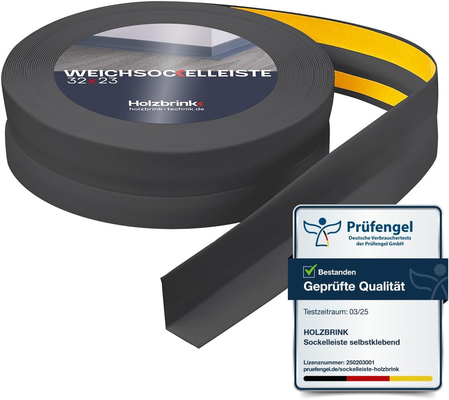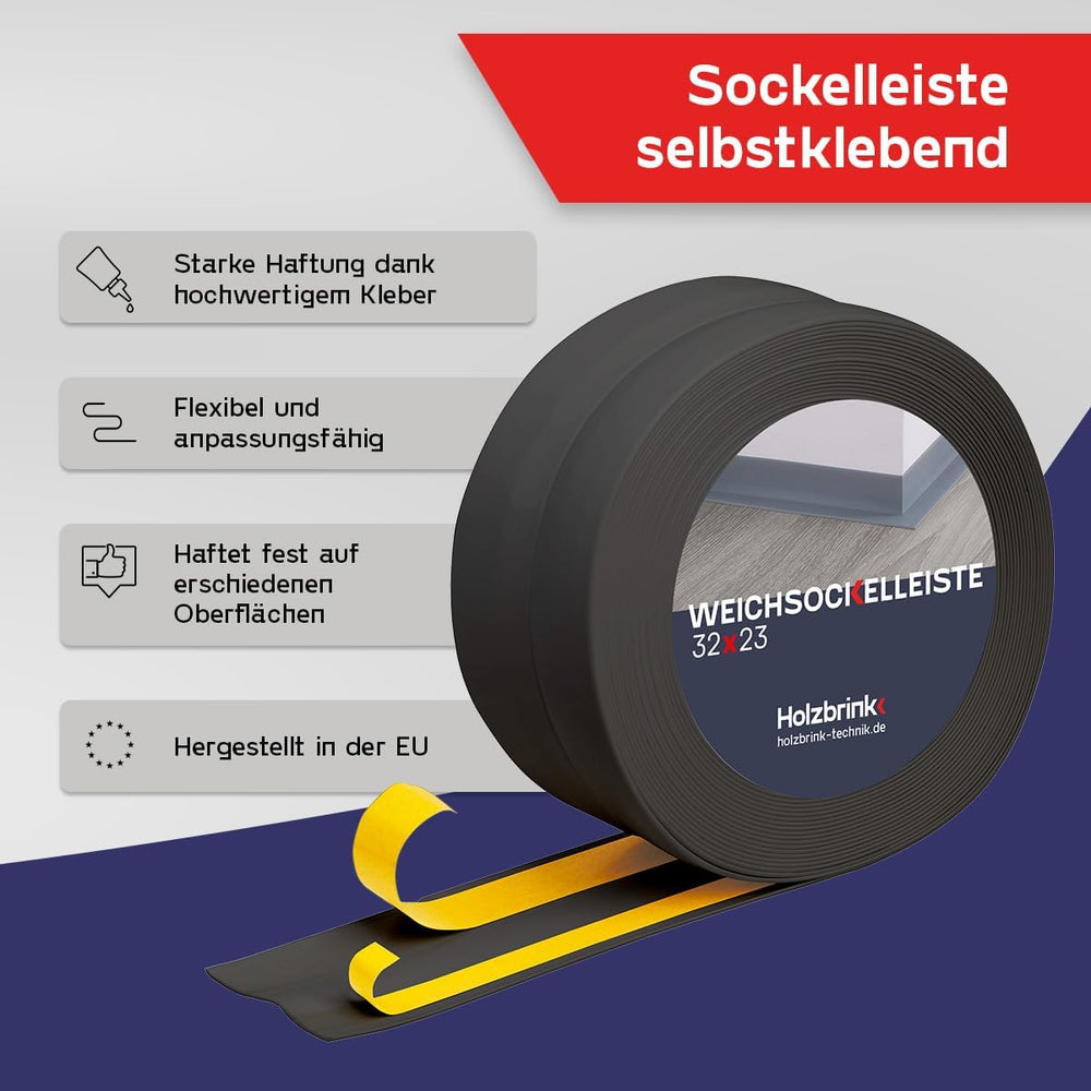 HOLZBRINK Weichsockelleiste selbstklebend DUNKELGRAU Knickleiste, 32x23mm, 15 Meter 15 m Dunkelgrau,