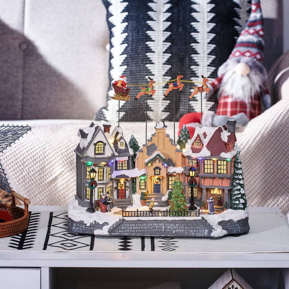 HOMCOM Weihnachtsdorf Weihnachtsdeko mit LED Tischdeko Weihnachtsstadt Winterlandschaft Winterdorf m