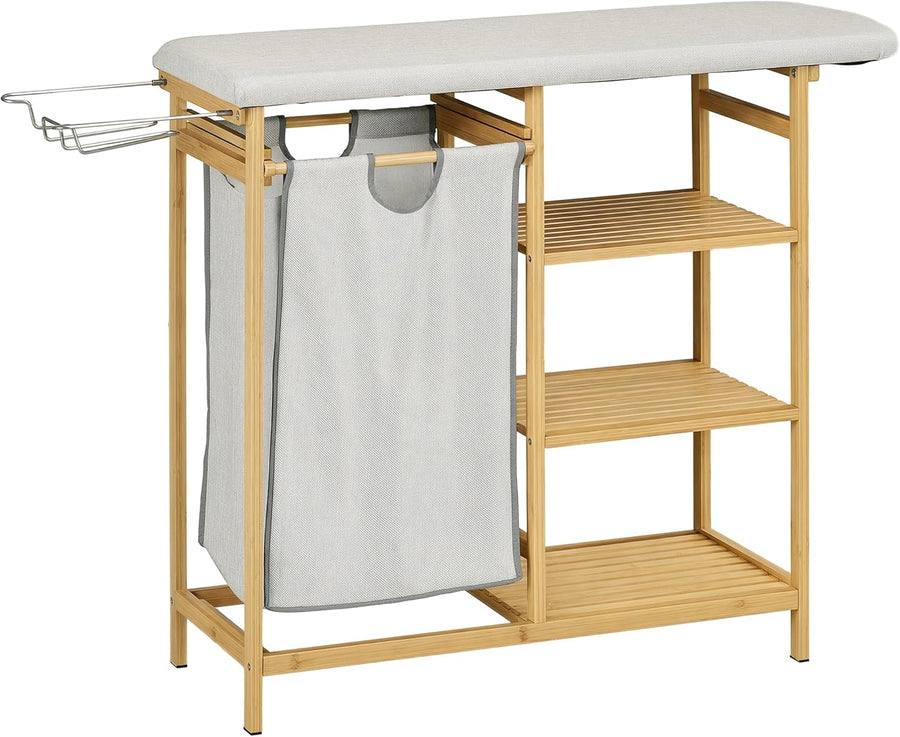 HOMCOM Wäschekorb 57,4 L Wäschesammler mit Bügelbrett und Bügeleisen, Wäschebox mit 3-Ebenen-Regal,