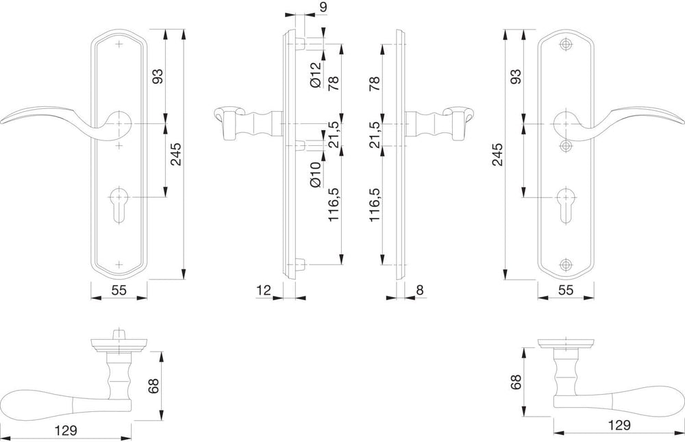 SH-Drückergarnitur PARIS - auf Langschild PZ72, 42 - 47, ohne Kzs., silber elox ; 1 Garnitur PZ 72 |