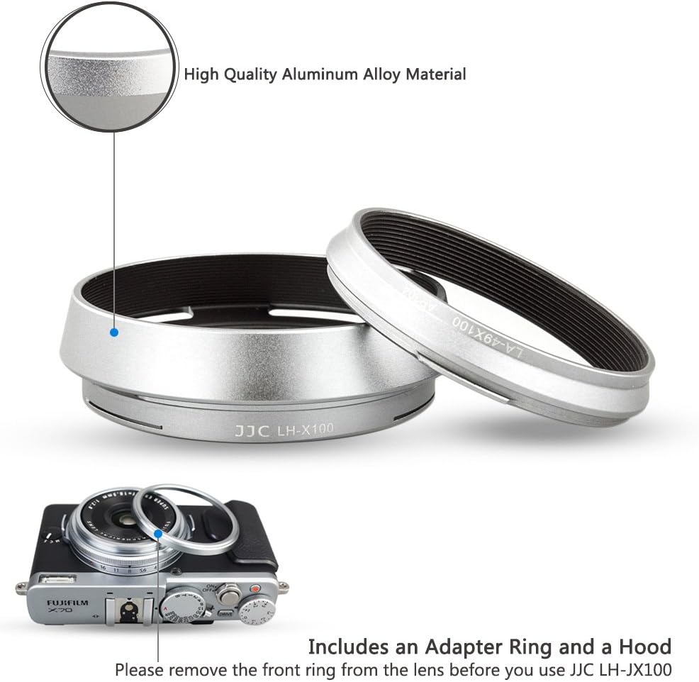 JJC Silber Sonnenblende und Filteradapter für Fujifilm X100V, X100F, X100T, X100S, X100 und X70 Kame