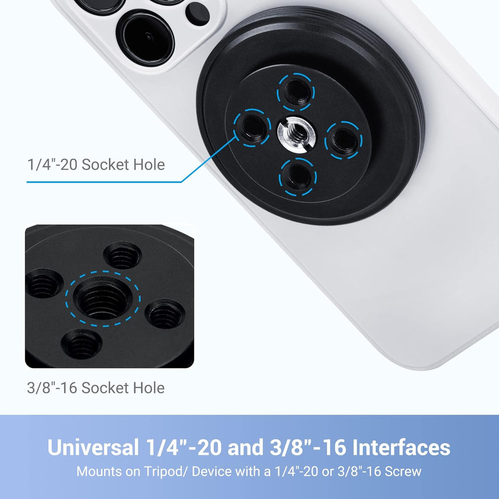 JJC Phone Tripod Mount Magnetic, Magnet iPhone Halterung für 1/4"-20 & 3/8"-16 Mount zu MagSafe, Tel