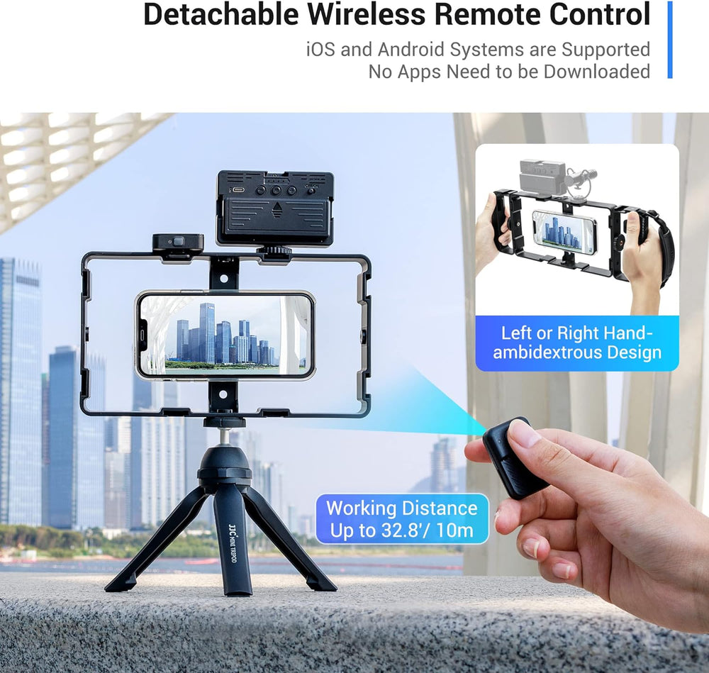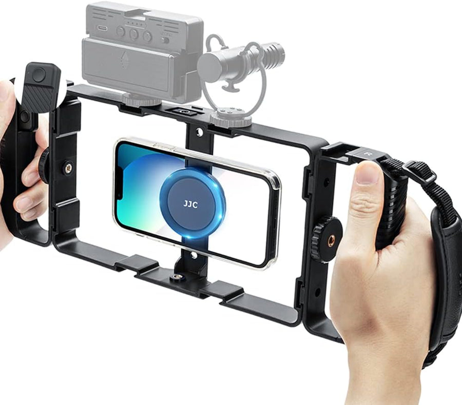 JJC Smartphone Video Rig Fernbedienungs Set mit 6 Kaltschuh Halterungen für iPhone 15 14 13 12 11 Pr