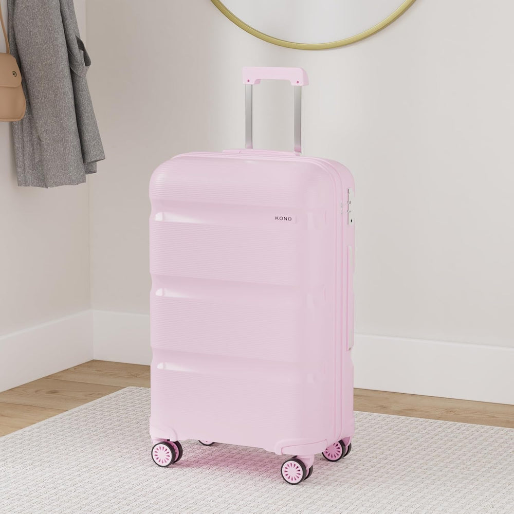 KONO Koffer Trolleys Reisekoffer mit TSA Schloss L (65cm Mittelgross Koffer) Rosa, L (65cm Mittelgro