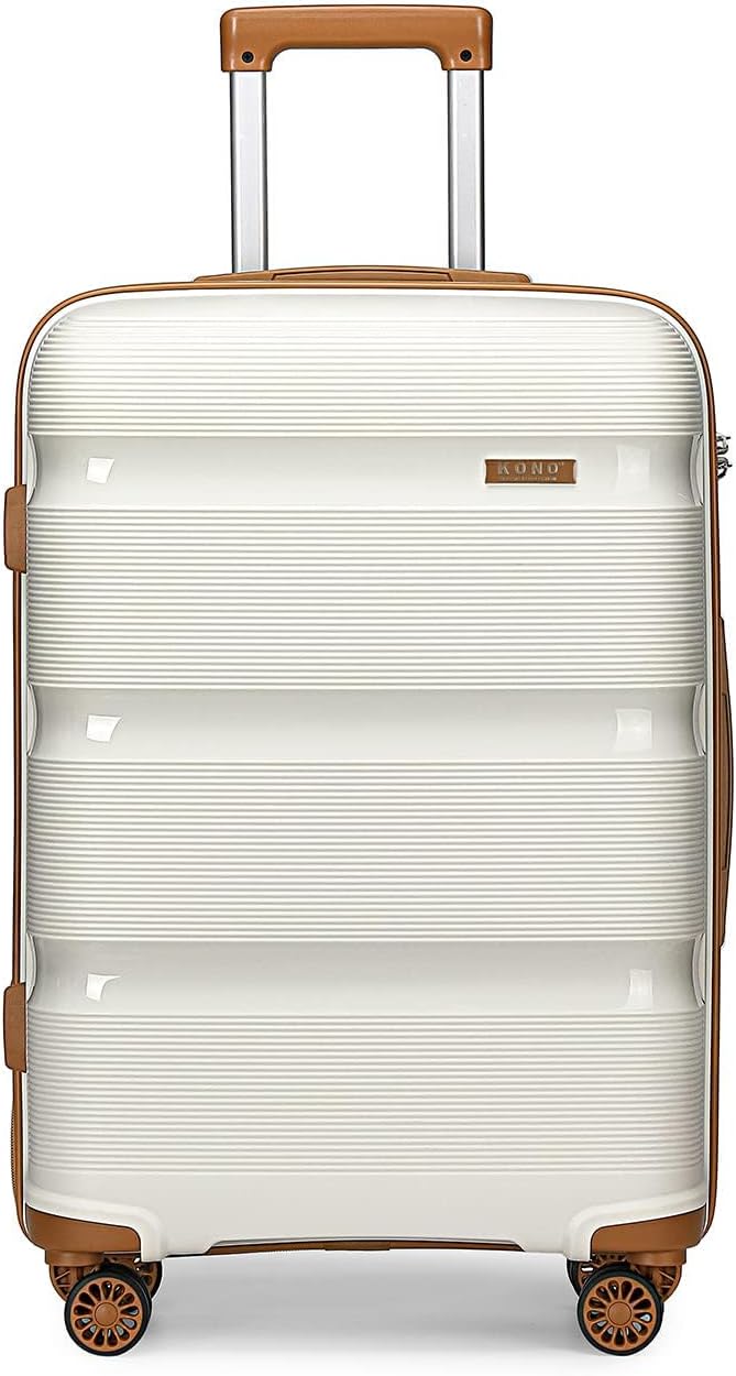 KONO Koffer Trolleys Reisekoffer mit TSA Schloss M (55cm Handgepäck) Creme Weiss, M (55cm Handgepäck