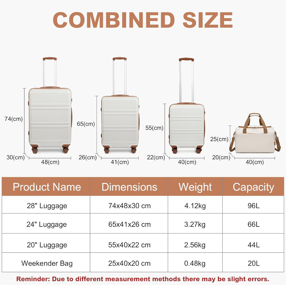 KONO Kofferset ABS Hartschalen Hardcase Trolley TSA-Schloss Reisekoffer Creme Weiss, Creme Weiss