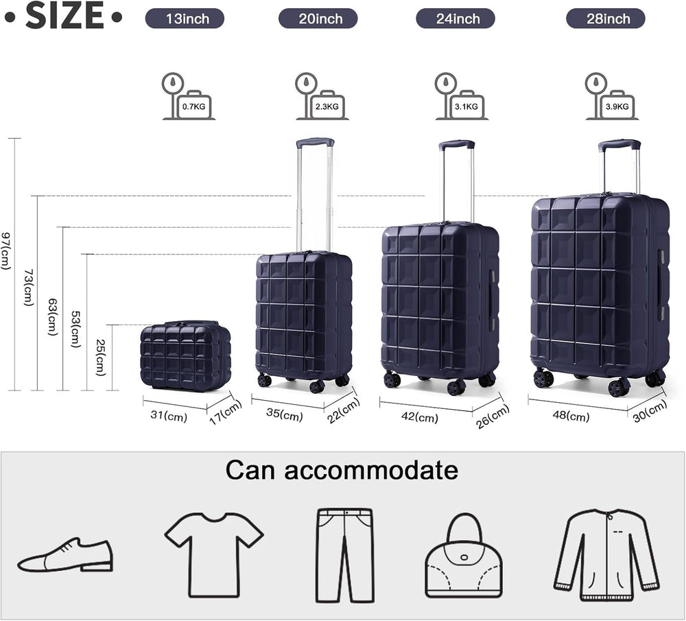 KONO Kofferset ABS Hartschalen Hardcase Trolley TSA-Schloss Reisekoffer Dunkelblau, Dunkelblau