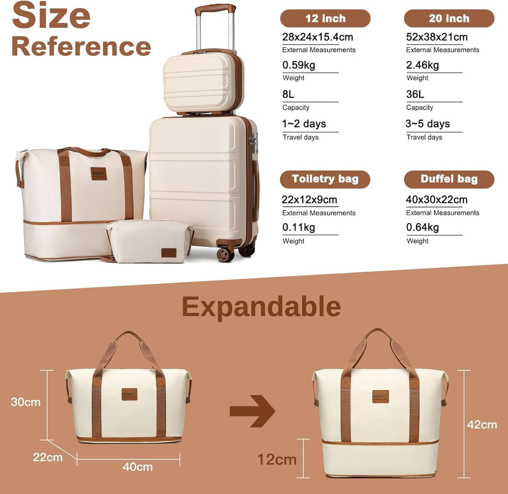 Kono Leichter Koffer Hartschale ABS Gepäck mit 4 Spinnrollen Beige Koffer XL, Beige Koffer XL