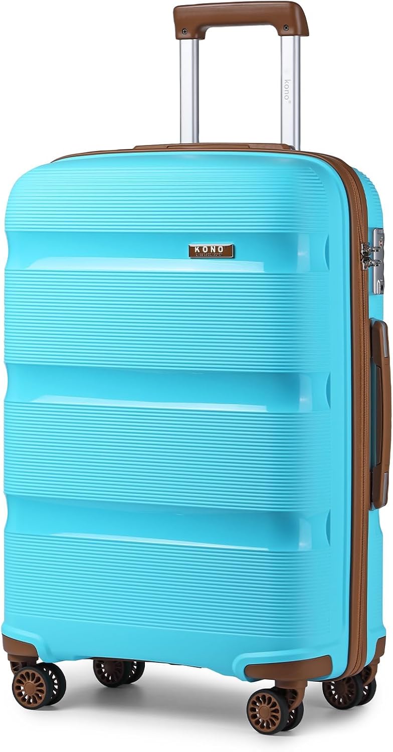 KONO Koffer Trolleys Reisekoffer mit TSA Schloss M (55cm Handgepäck) Blau/Braun, M (55cm Handgepäck)