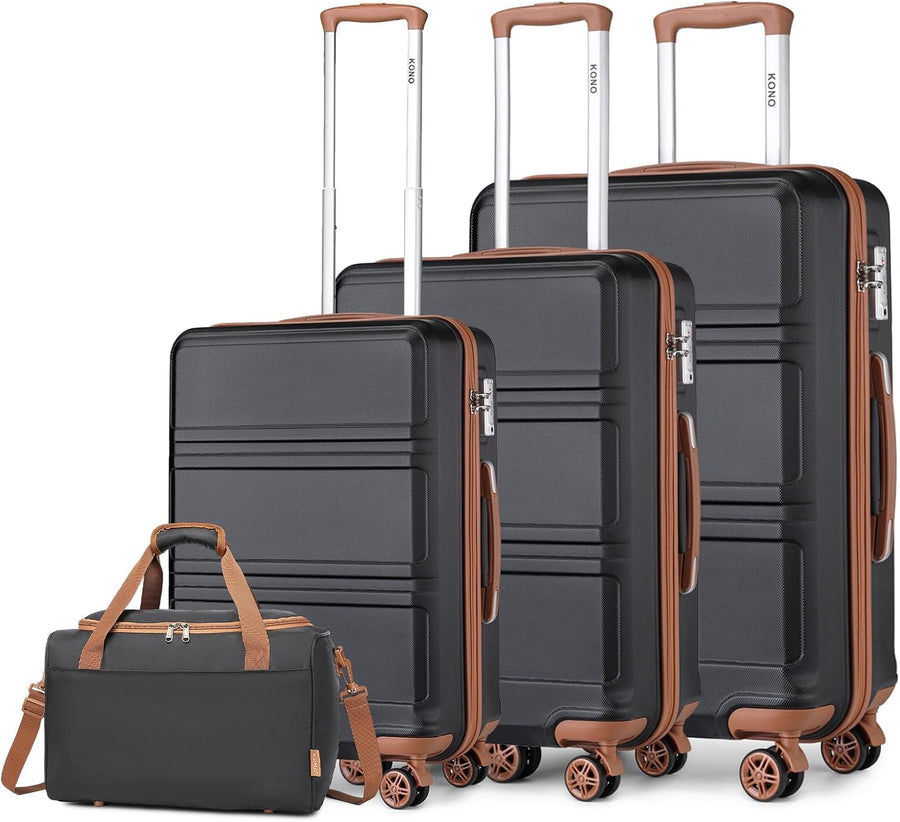 KONO Kofferset 4 Teilig Hartschalekoffer mit Rollen TSA Schloss Gepäcksets Handkoffer Kleiner Mittel