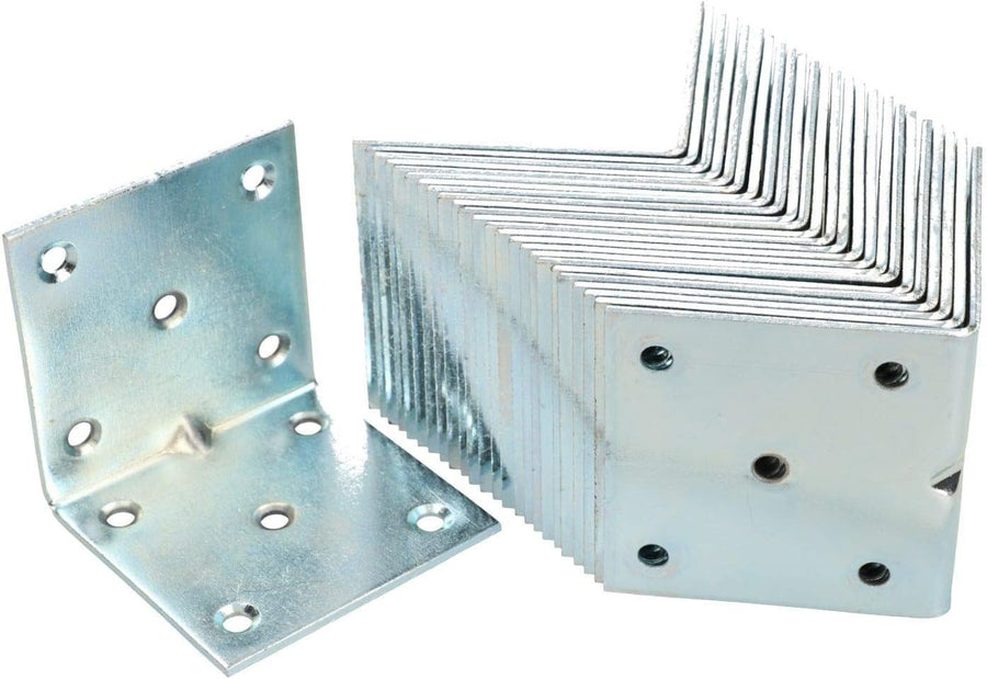 KOTARBAU® 25 Stk. Winkelverbinder 100x100x80 mm mit Rippe Sicke Lochwinkel Bauwinkel Holzverbinder B