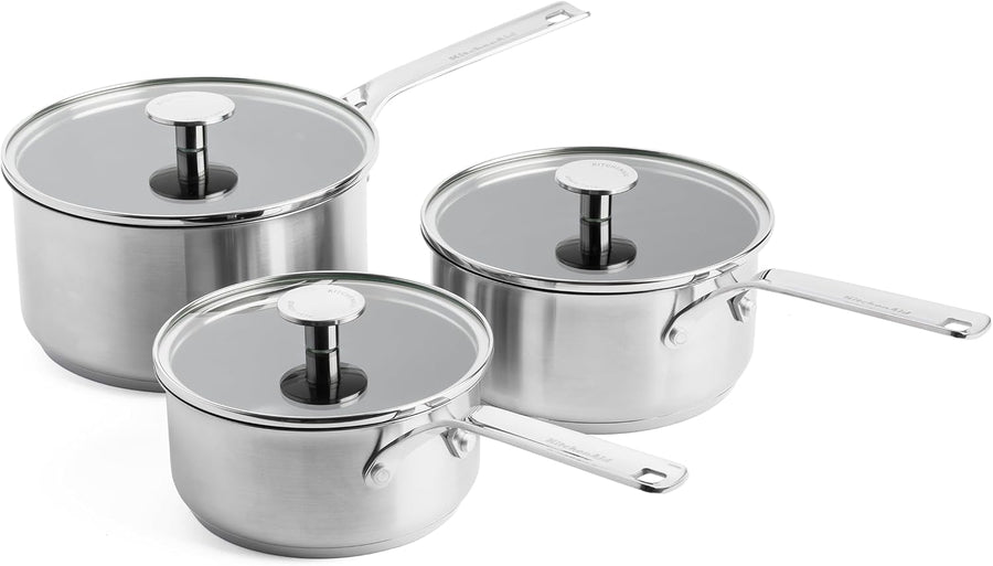 KitchenAid Stainless Steel Stielkasserollen-Set (16cm, 18cm & 20cm), PFAS-freie keramische Antihaftb