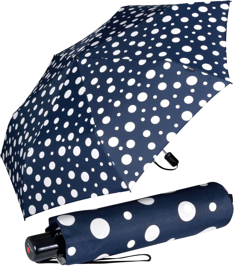 Knirps Taschenschirm T.200 Duomatic Dots – Auf-Zu-Automatik – Sturmfest – Windproof – Punkte-Design