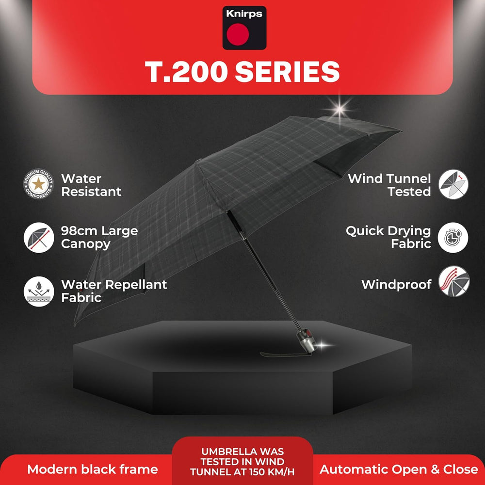 Knirps Taschenschirm T.200 Duomatic - stabil und sturmfest - Check Grey 98 cm Check Grey, 98 cm Chec