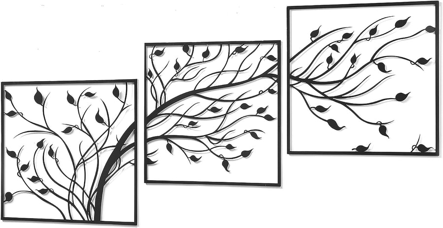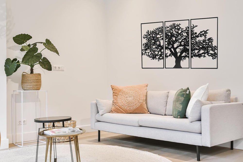 Kobolo Wandbild Wanddeko Metallbild - TREE - Metall - dreiteilig - schwarz - Baum Lebensbaum - XXL