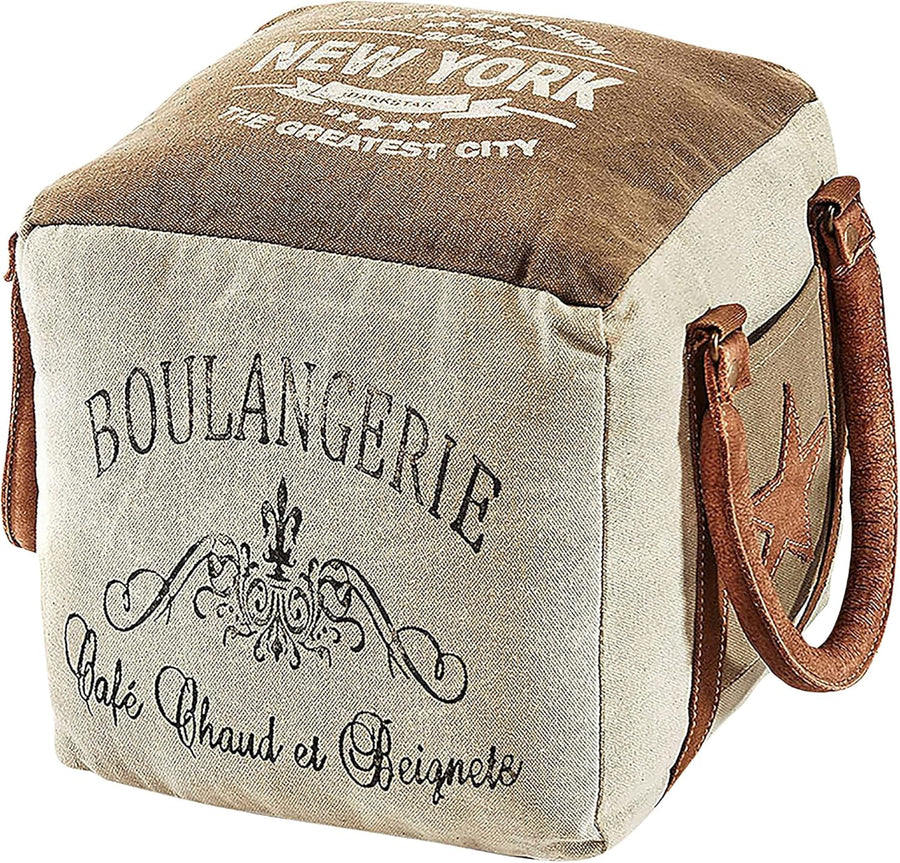 Kobolo Sitzpouf eckig Pouf Sitzwüfel Hocker - Chateau - aus Canvas - mit Applikationen