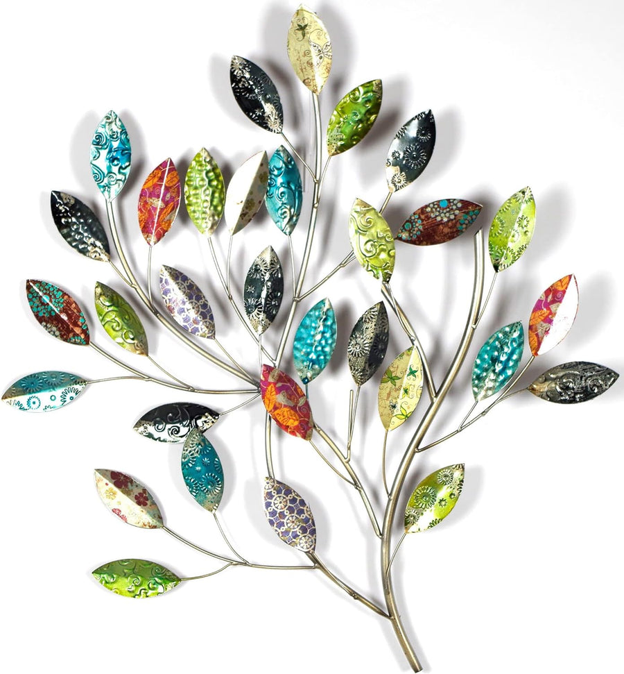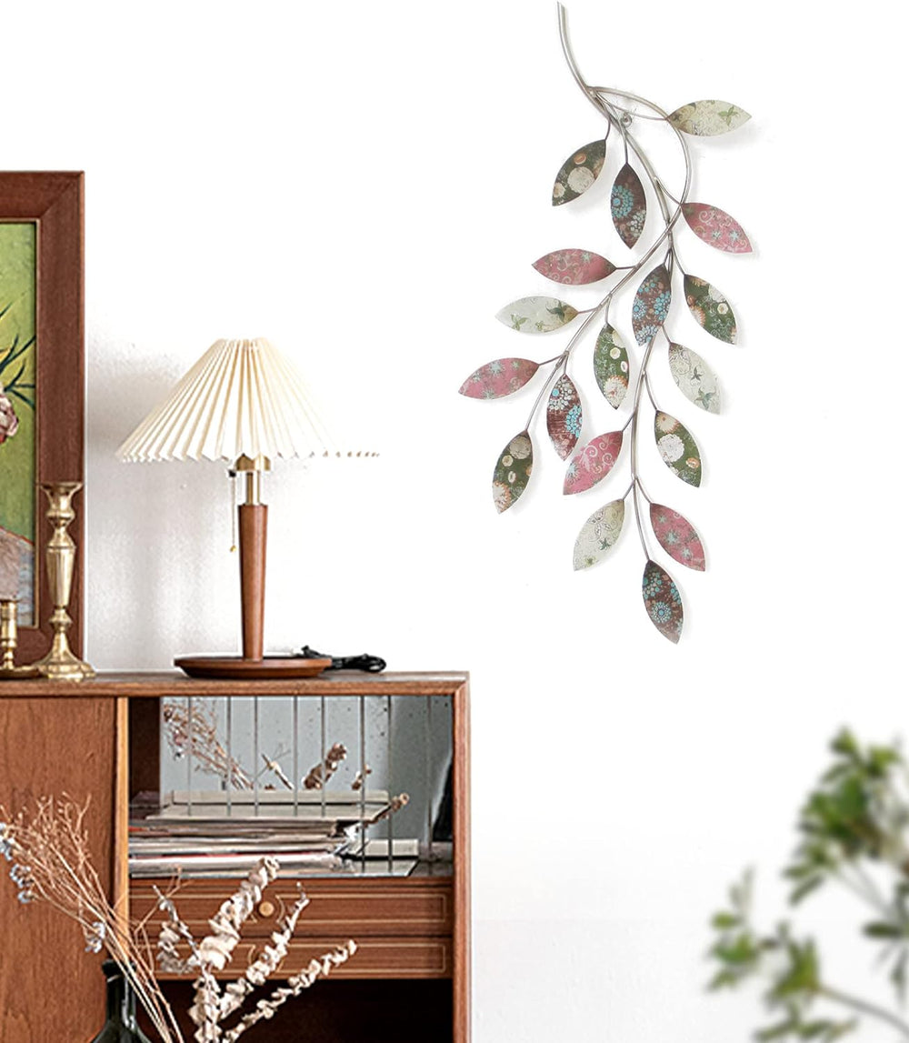 Kobolo Wandbild Wanddekoration Metallbild - ZWEIG mit Blättern - Metall - 30x65 cm