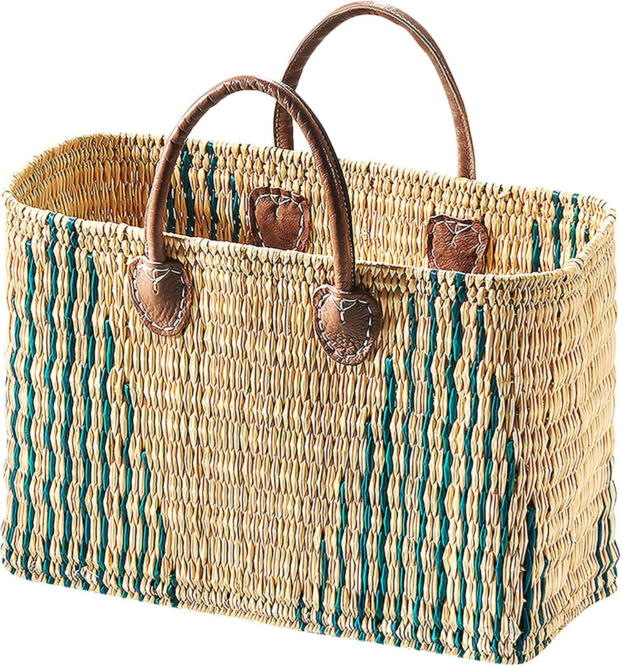 Kobolo Tasche Seegrastasche Korbtasche- Stripes - Lederhenkel - grünes Muster