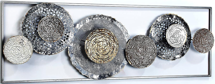 Kobolo Wandbild Wanddeko Metallbild 3D - Round - aus Metall in beige und Gold