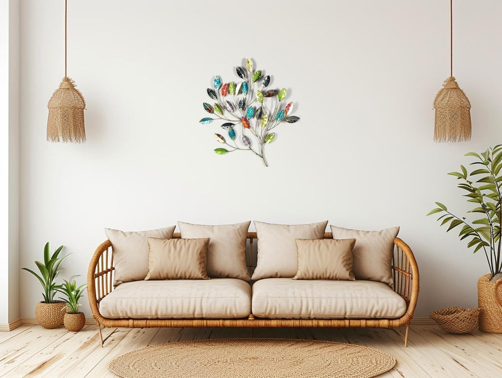 Kobolo Wandbild Wanddeko Metallbild - BUSCH mit Blättern - Metall - 66x65 cm
