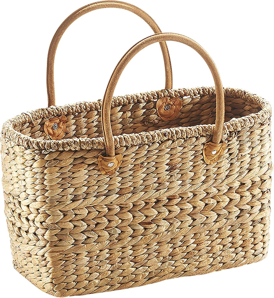Kobolo Tasche Korbtasche geflochten aus Wasserhyazinthe - Lederhenkel - 43x18x26