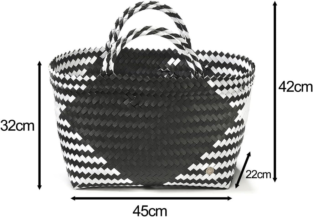 Kobolo Tasche Einkaufskorb geflochten Kunststoff Shopper - ROM XXL - schwarz weiss