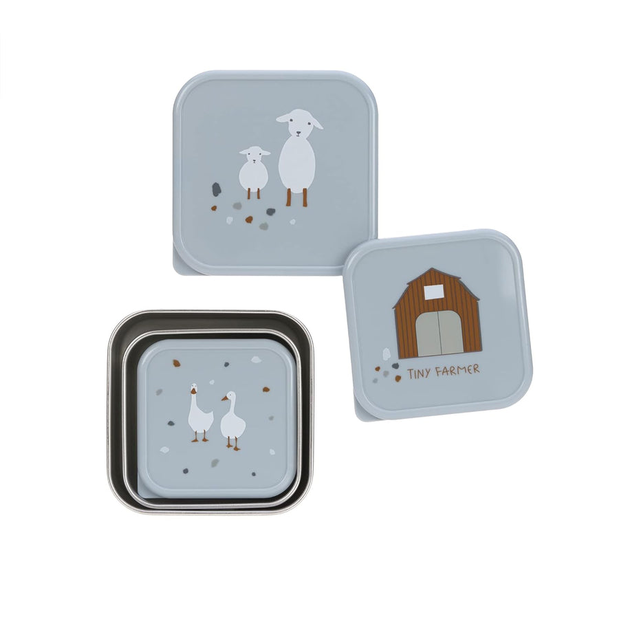 LÄSSIG Snackbox 3er Set Edelstahl 3 Stück Tiny Farmer blue Blau, Blau