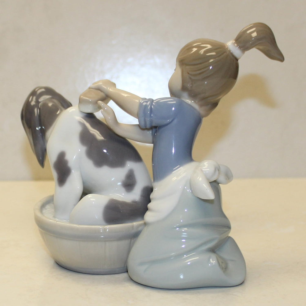 LLADRÓ Mädchen-Figur Hundebad. Mädchen. Porzellan.
