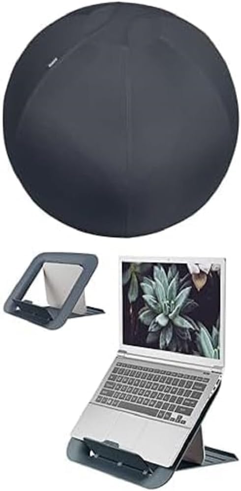 Leitz Ergo Set Active Sitzball, Gymnastikball 65 cm, Anti-Wegroll-Funktion, Stoffbezug + Leitz Höhen