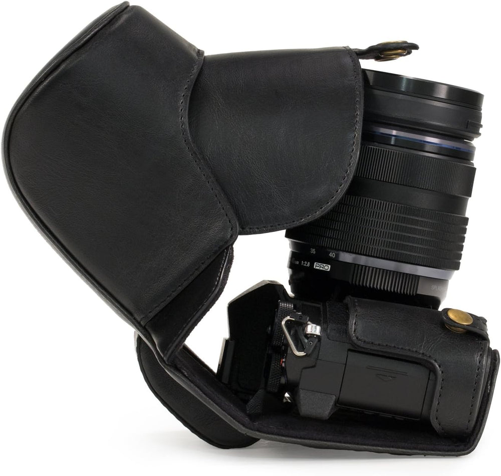 MegaGear Olympus OM-D E-M5 Mark II 12-40mm Ever Ready Leder Kamera-Case mit Trageriemen und Batterie