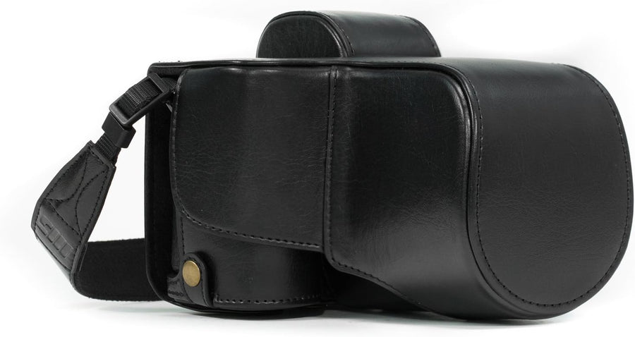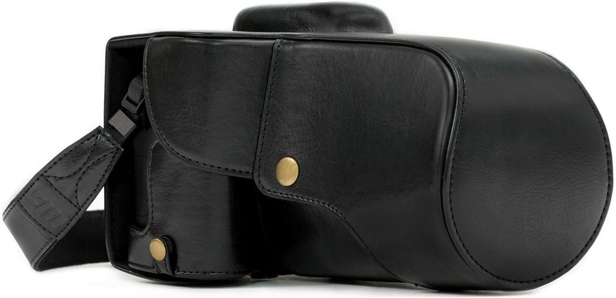 MegaGear Panasonic Lumix DC-TZ100, TZ200 Ever Ready Echtleder Kamera-Case mit Trageriemen - Schwarz,