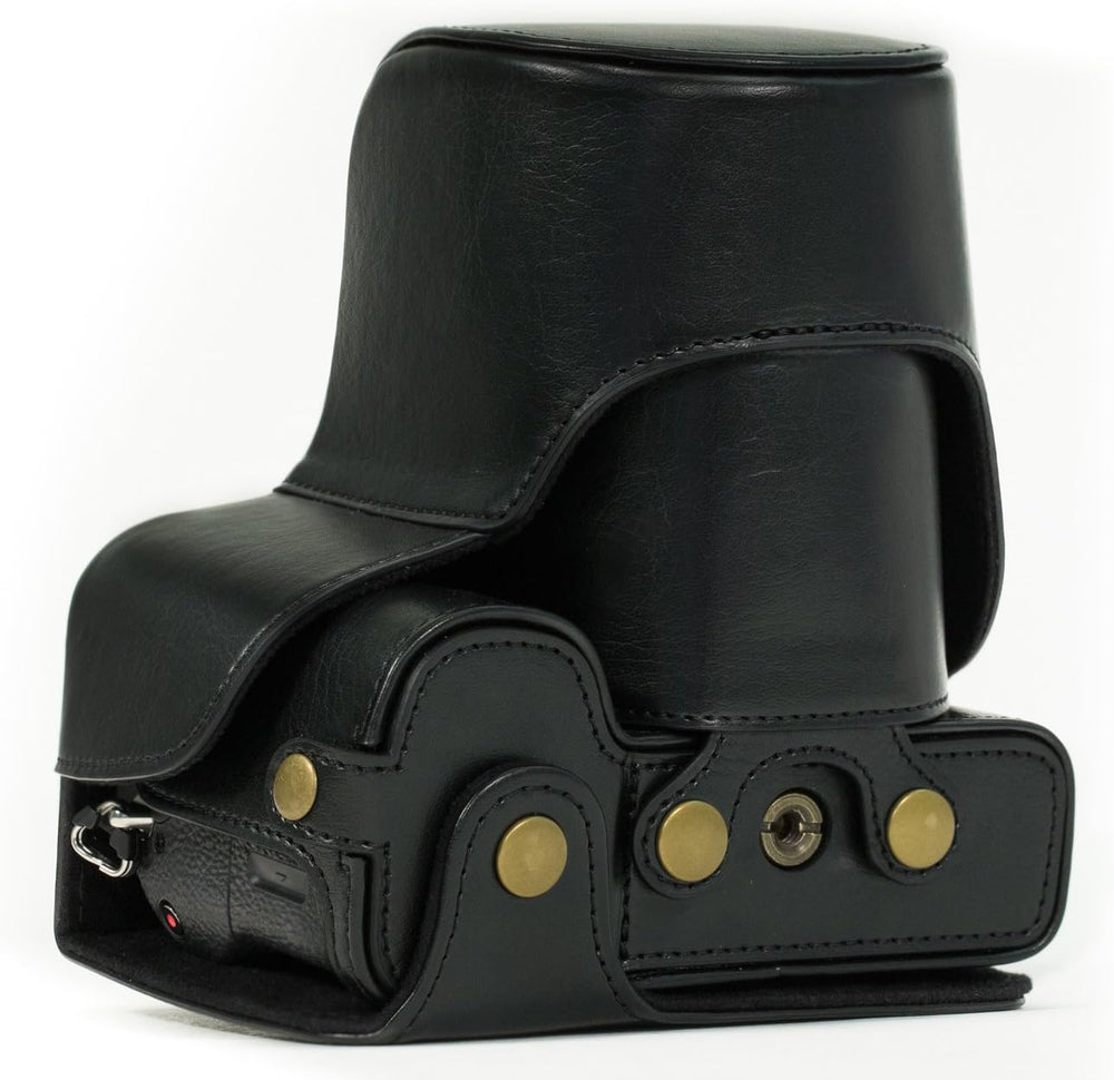 MegaGear MG599 Ever Ready Leder Kameratasche mit Trageriemen für Sony Cyber-Shot DSC-WX500 schwarz,