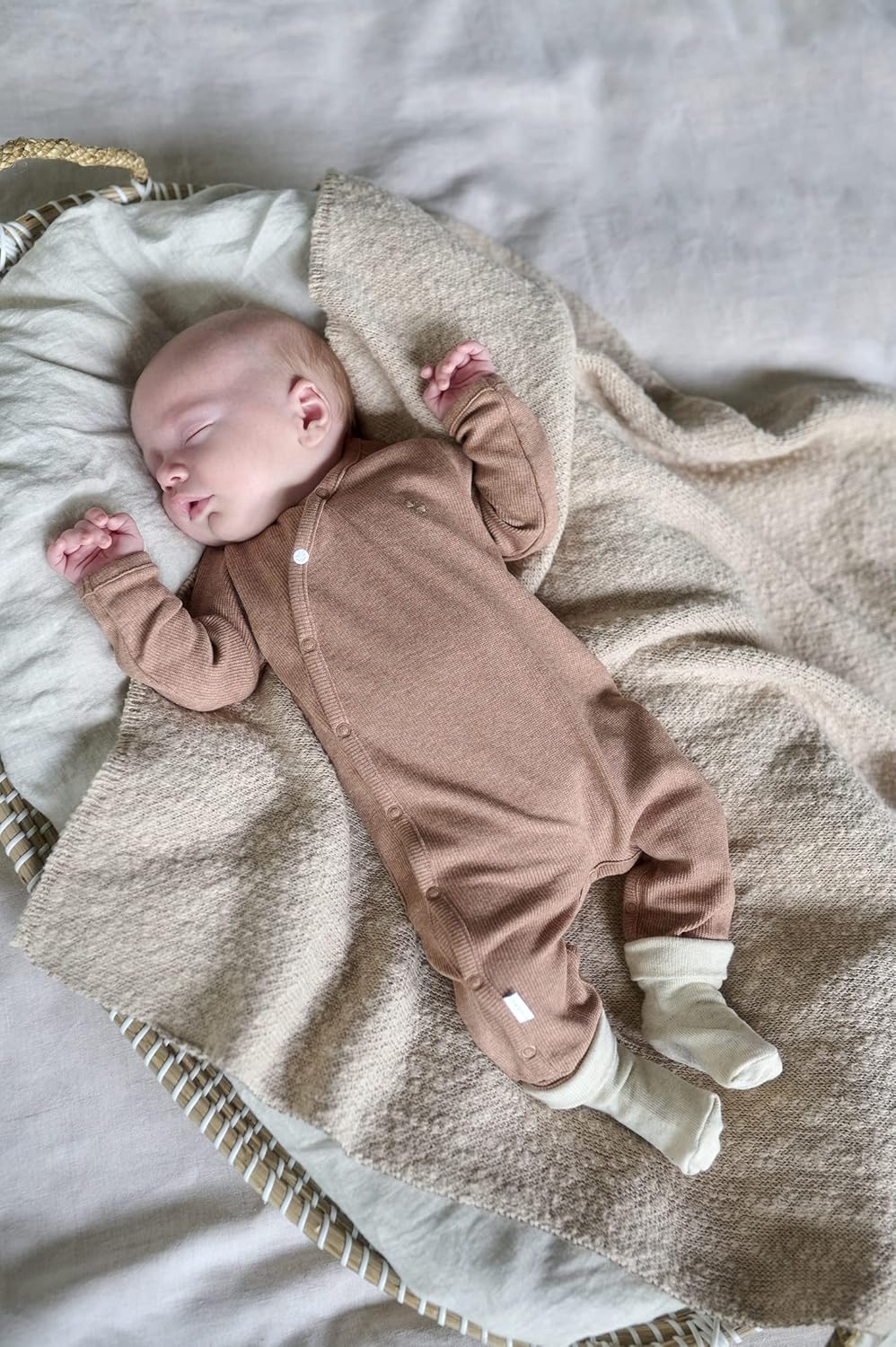 Noppies Unisex Baby U Playsuit Ls Rib Nevis Kleinkind-Strampelanzug 50 Cafe Au Lait Melange - N090,