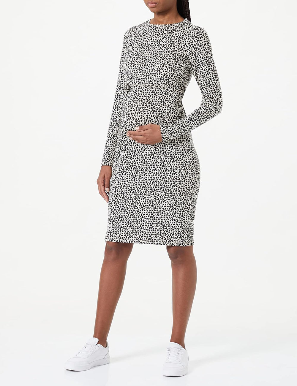 Noppies Maternity Damen Dress Rolla Nursing Long Sleeve Allover Pint Kleid, Oatmeal-P807, XL