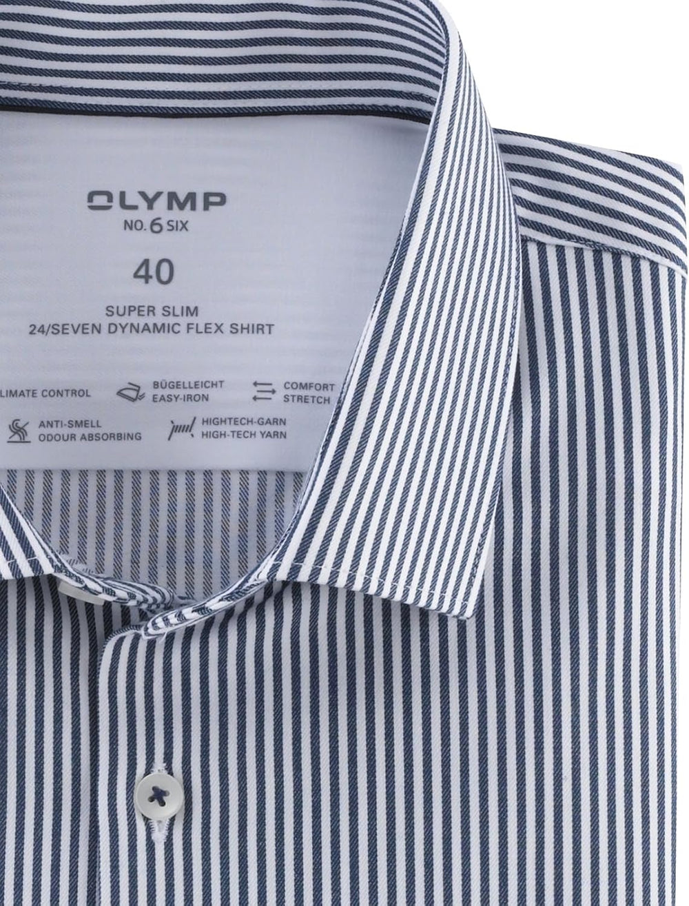 OLYMP Herren Businesshemd Langarm No. Six 24/Seven,Römer Streifen,super Slim,Modern Kent 37 Dunkelbl