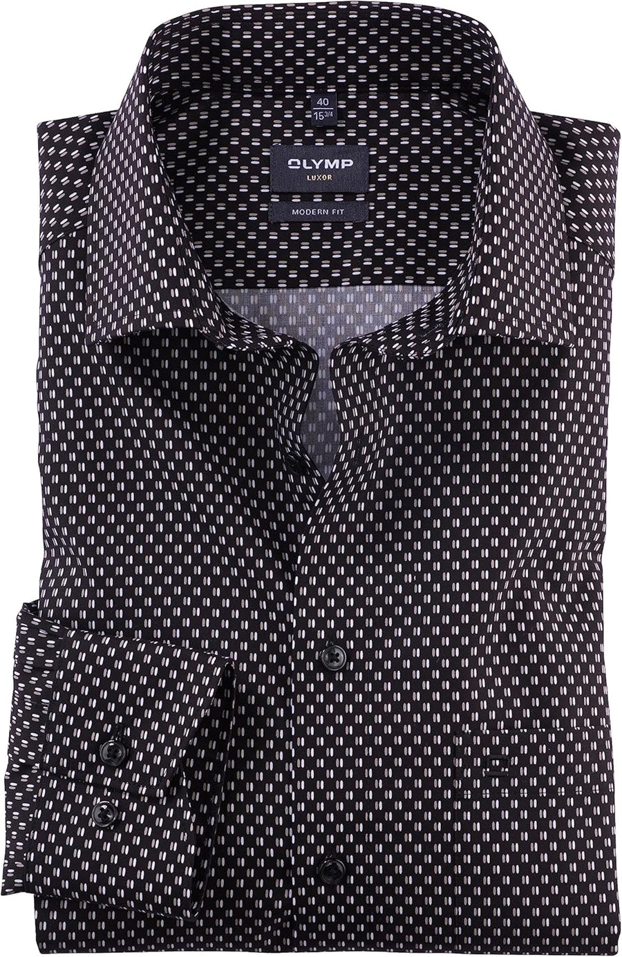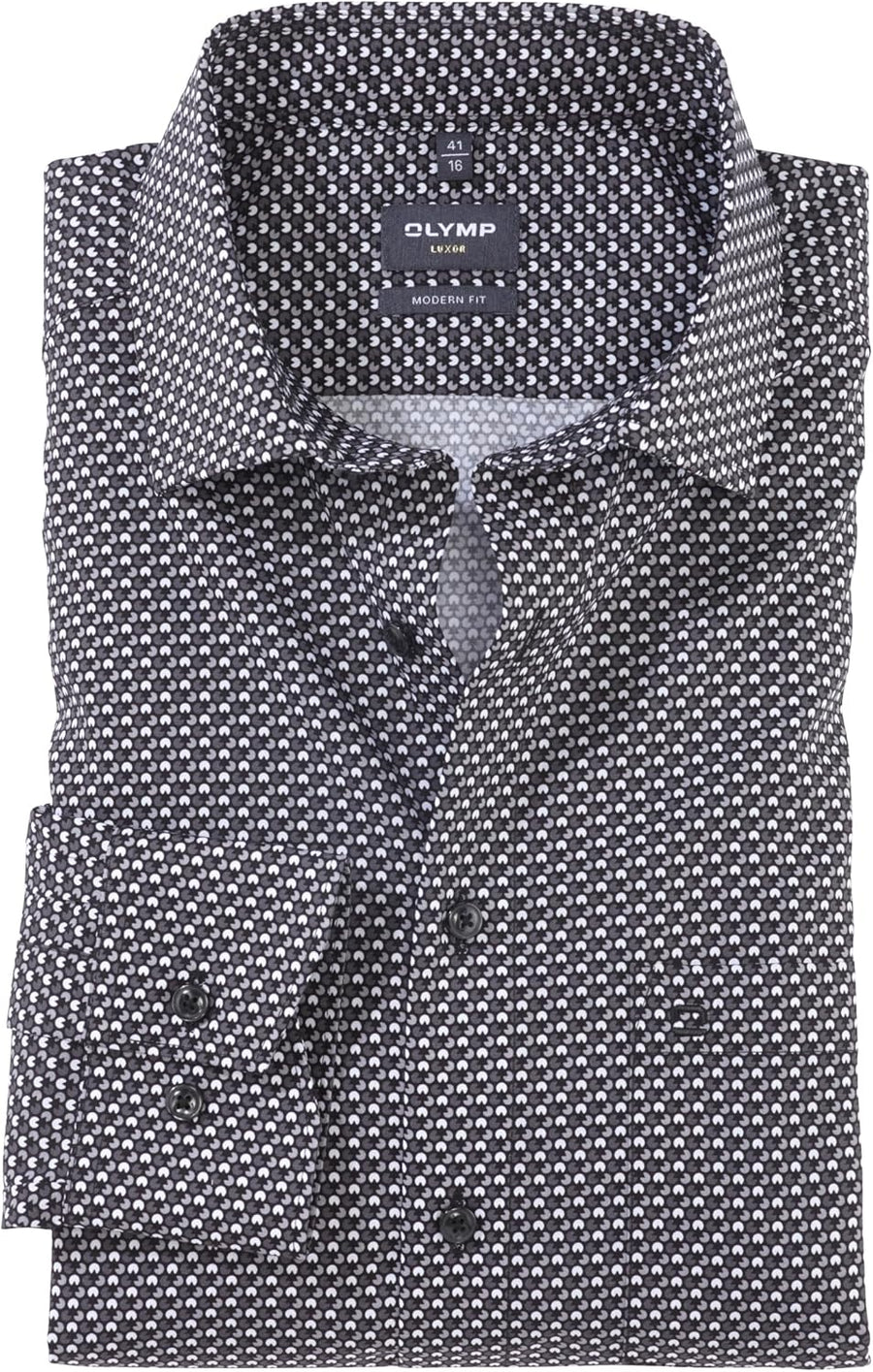 OLYMP Herren Businesshemd Langarm Luxor,Rotationsdruck,modern fit,Global Kent 38 Schwarz 68, 38 Schw